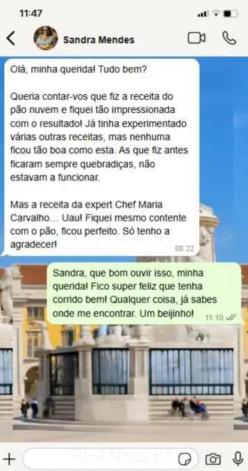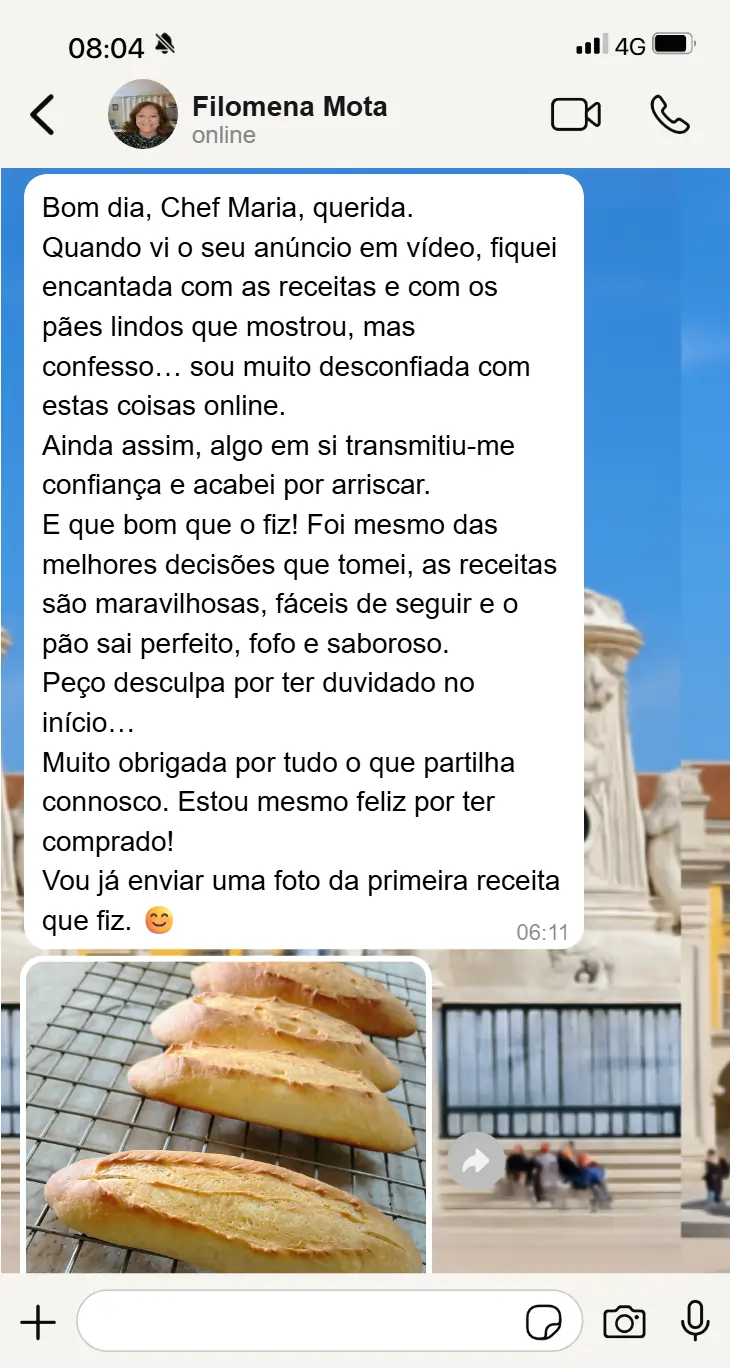 Utilizei toda a minha experiência de mais de 10 anos para reunir as melhores receitas que testei pessoalmente e disponibilizá-las numa aplicação, para que qualquer pessoa consiga fazer Pães Sem Glúten de forma rápida e prática. Terás acesso à aplicação por tempo ilimitado. Ou seja, podes ver e rever sempre que quiseres, sem restrições. Criei esta aplicação com muito carinho, a pensar na tua realidade e no desejo de teres uma vida mais saborosa e saudável, sem glúten.